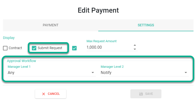- คลิกที่ Submit request เพื่อตั้งค่าให้พนักงานที่มีเงินได้ประเภทนี้ในสัญญาสามารถส่งคำร้องได้