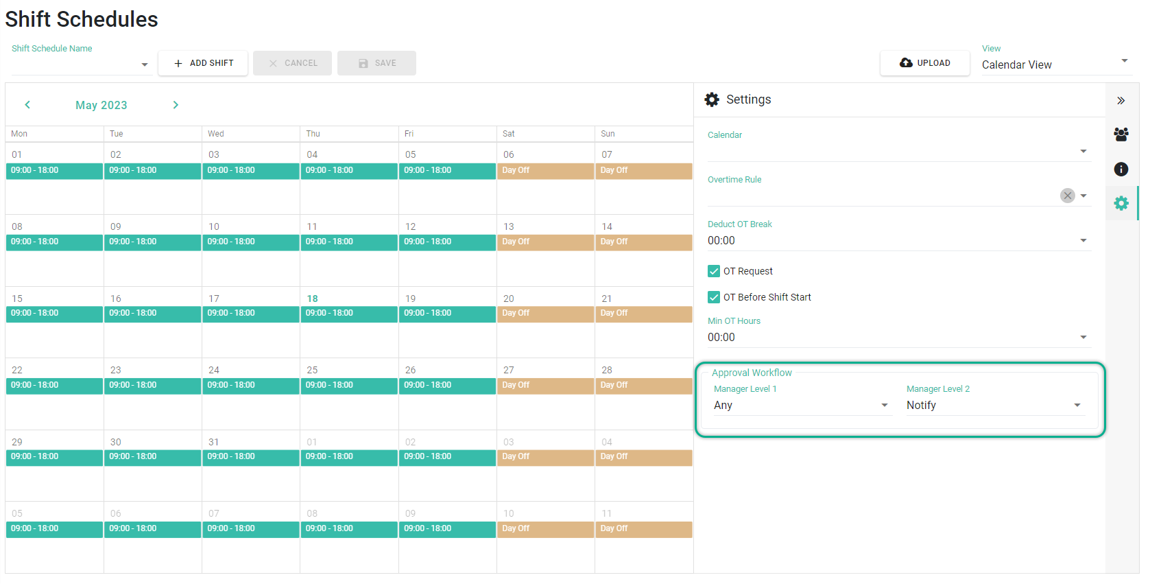 - คลิกที่แถบ ตั้งค่า (Settings) เพื่อตั้งค่าตารางกะ