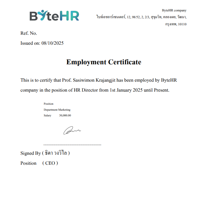 หนังสือรับรองเงินเดือน (Salary Certificate)