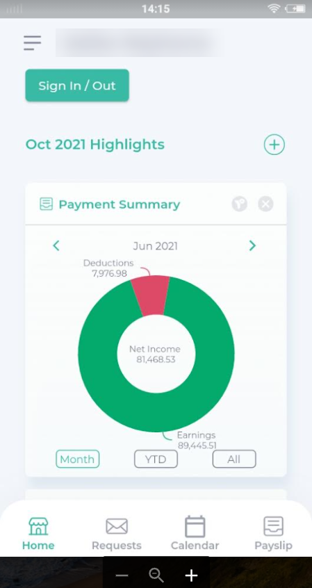 ○ Employees can view their own Payroll Dashboard in Mobile App