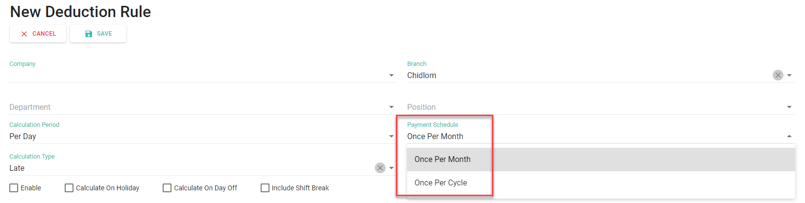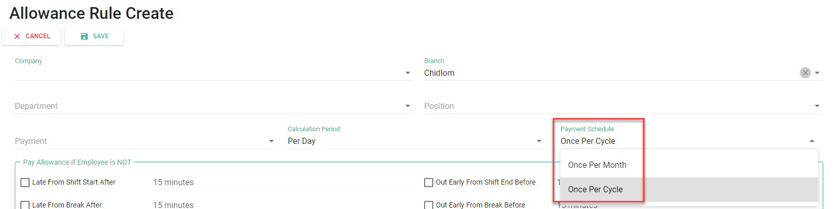 ○ You can set Payment Schedule in Allowance and Deduction Rules Once per Cycle if Payment Schedule for Salary is Twice a Month