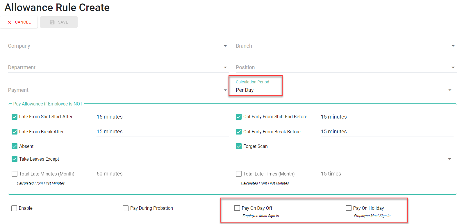 ○ Pay on Day Off and Pay on Holiday are updated to check Timestamp.