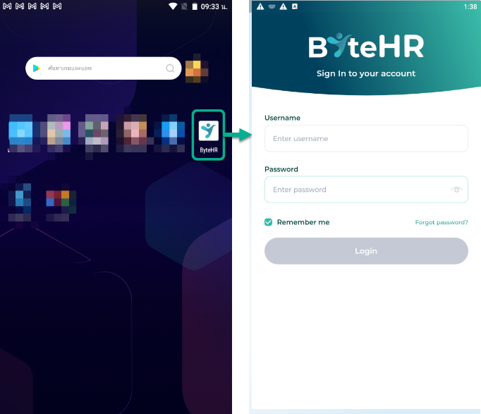 Login ByteHR for Android / การลงชื่อเข้าใช้ใน ByteHR สำหรับ Android