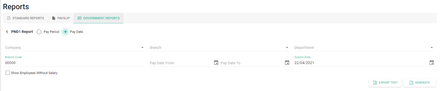 รายงานทางราชการตามเดือนที่จ่าย / วันที่จ่าย (Government Reports by Pay Period / Pay Date