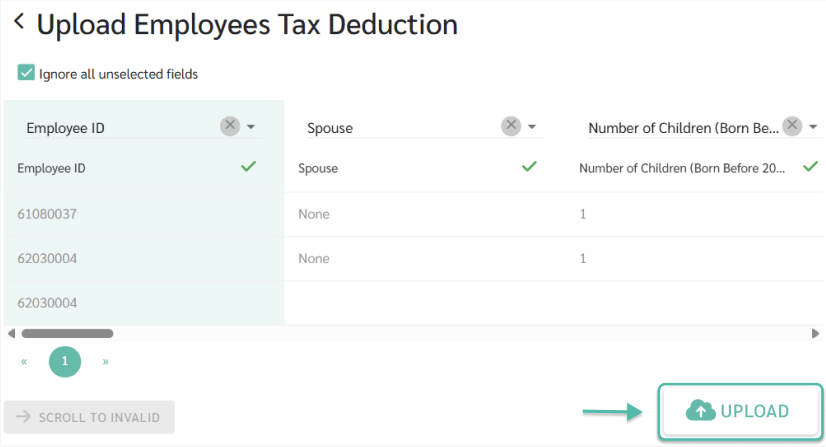 กรณีที่สถานะของพนักงาน (Marital Status) ในสัญญาจ้างเป็น โสด/Single, หม้าย/Widowed, หย่า/Divorced หรือ แยกกันอยู่/Separated แต่ในเทมเพลตใส่สถานะของคู่สมรสเป็น แยกยื่น (File Tax Separately) หรือไม่มีเงินได้ (Without Income) ระบบจะไม่สามารถอัปโหลดได้