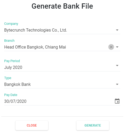 1) Generate Bank File by Company (สร้างไฟล์ธนาคารเป็นบริษัท)