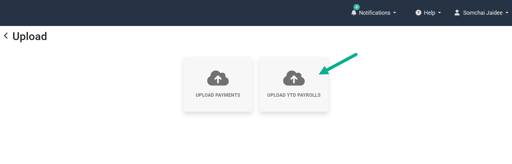 4. ไปที่ อัปโหลดรายละเอียดเงินเดือนของเดือนที่ผ่านมา (Upload YTD Payrolls)