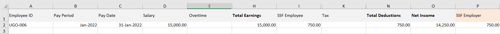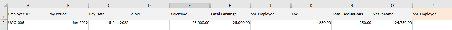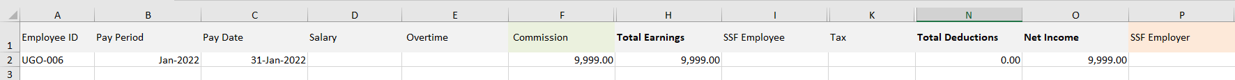 ○ ช่อง Net Income จะต้องเท่ากับ Total Earnings - Total Deductions