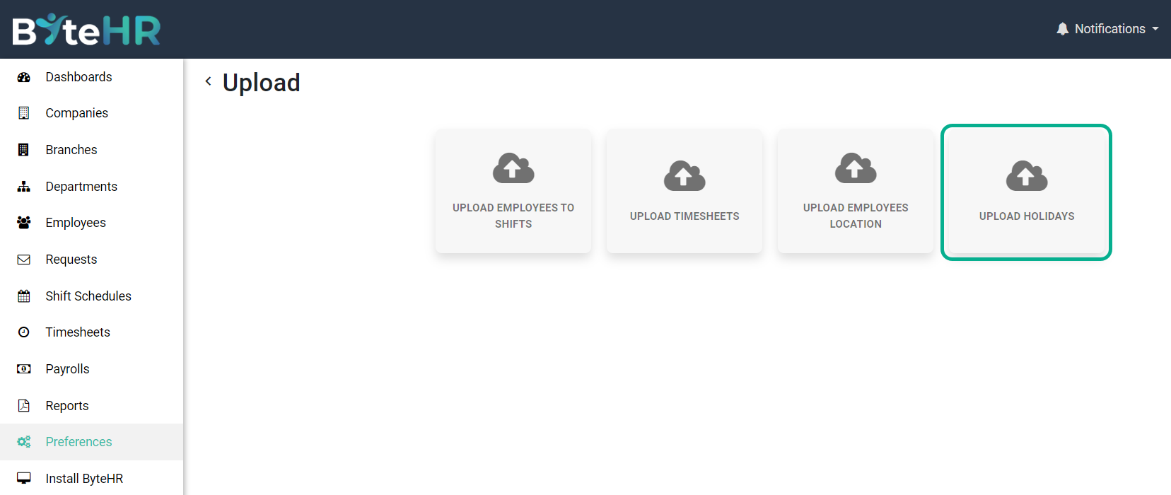 4. คลิกที่ อัปโหลดวันหยุดนักขัตฤกษ์ (Upload Holidays)