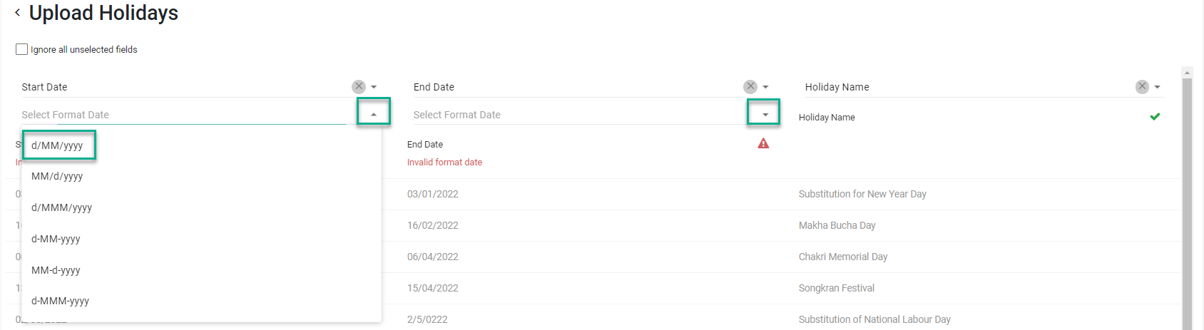 การอัปโหลดวันหยุดนักขัตฤกษ์ (Upload Holidays)