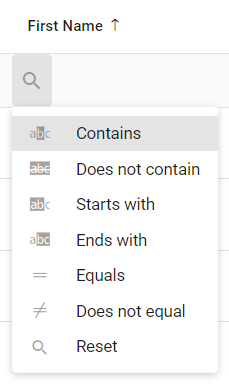 รีเซ็ตการกรองข้อมูลทั้งหมด ในคอลัมน์นี้ |