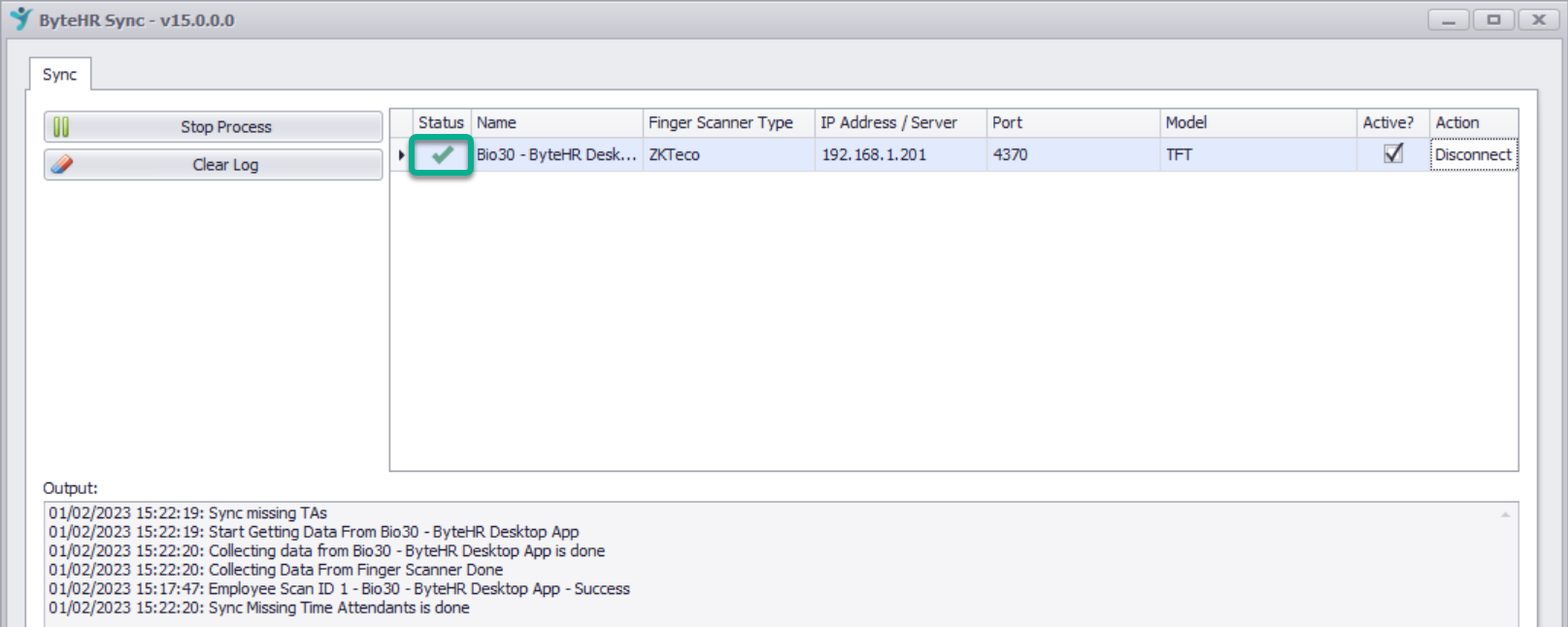 - หากเชื่อมต่อผ่าน Auto Sync App ให้ตรวจสอบว่าสถานะของเครื่องสแกนนิ้วเป็นเครื่องหมายถูก