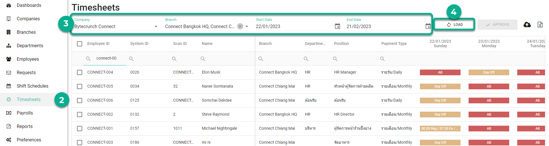 3. Auto Sync : เมื่อพนักงานลงเวลาผ่านเครื่องสแกนนิ้ว ที่เชื่อมต่อกับระบบ ByteHR แล้ว เมื่อโหลดตารางเวลา ระบบจะดึงข้อมูลการสแกนนิ้วมาประมวลผล