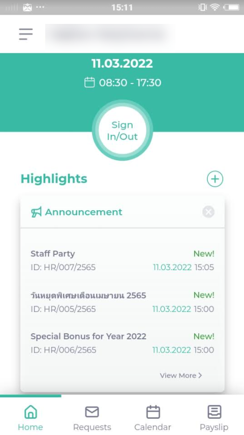 ○ พนักงานสามารถดูประกาศทั้งทางแอพมือถือและเว็ปแอพ