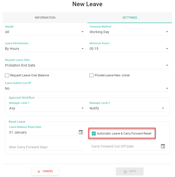 2) Auto Reset Leave (รีเซ็ตวันลาอัตโนมัติ)