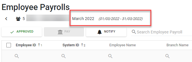 ○ หน้ารายละเอียดเงินเดือนจะแสดงระยะเวลาการชำระเงินจากวันที่ ถึงวันที่ ตามงวดการจ่ายเงินที่ตั้งค่าในการตั้งค่าเงินเดือน