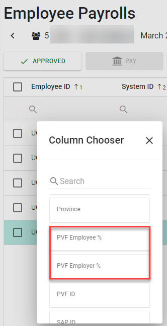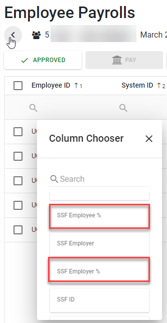 4) Add Files SSF Rate and PVF Rate in Column Chooser of Payroll Detail Grid (เพิ่มอัตราประกันสังและอัตรากองทุนสำรองเลี้ยงชีพในหน้ารายละเอียดเงินเดือน)
