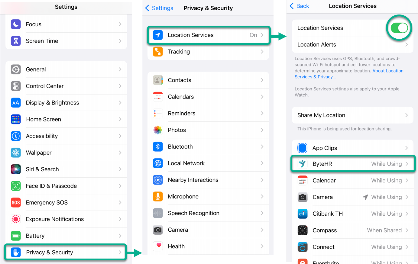 3. เปิดการใช้งาน บริหารหาตำแหน่งที่ตั้ง (Location Services)