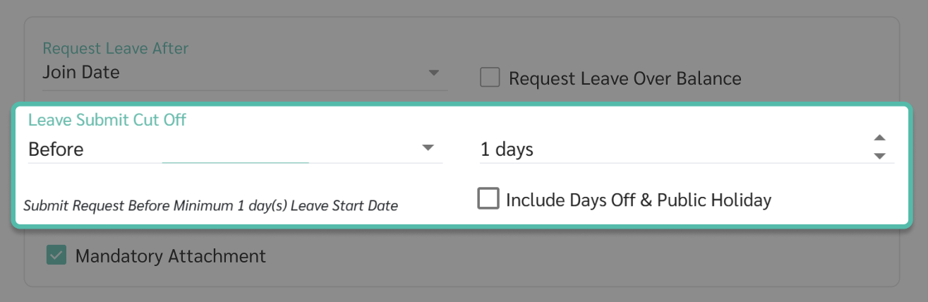 - กำหนดวันยื่นคำร้องขอลา (Leave Submit Cut Off)