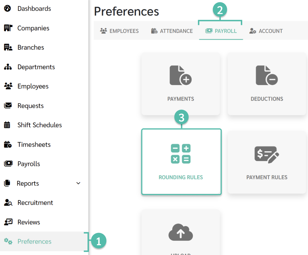 วิธีการสร้างกฏการปัดเศษ 1. ไปที่ การตั้งค่า (Preferences)2. คลิกเลือกที่แท็บ การตั้งค่าเกี่ยวกับเงินเดือน (Payroll)