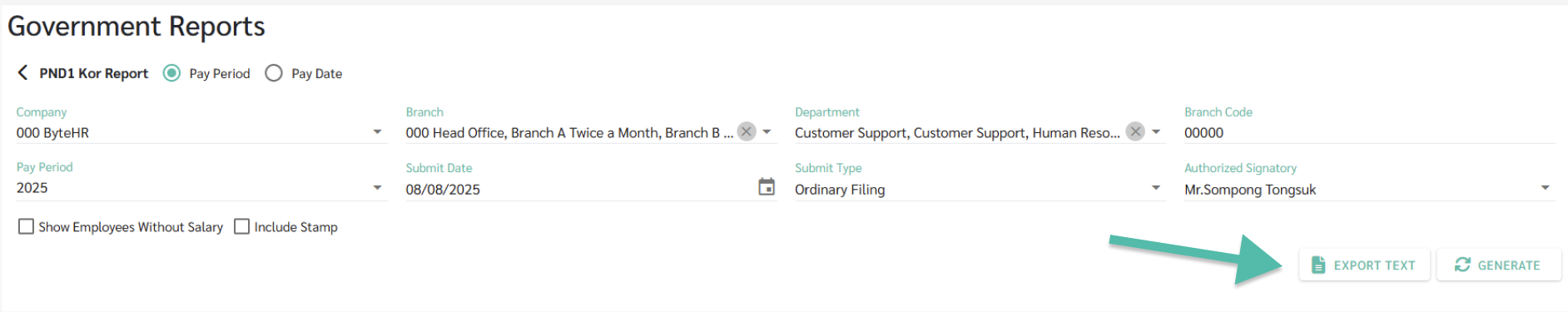13. คลิก เพื่อทำเครื่องหมายถูก หรือ นำเครื่องหมายถูกออก ที่ แสดงพนักงานที่ไม่มีเงินเดือน (Show Employee Without Salary)