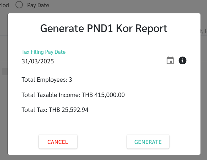 4. เลือก ระยะเวลาการชำระเงิน (Pay Period) หรือ วันจ่ายเงิน (Pay Date)