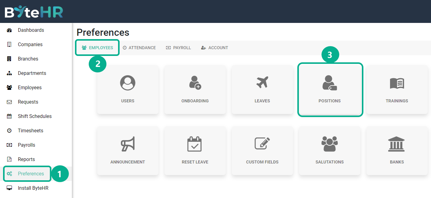 3. คลิก ตำแหน่ง (Positions)