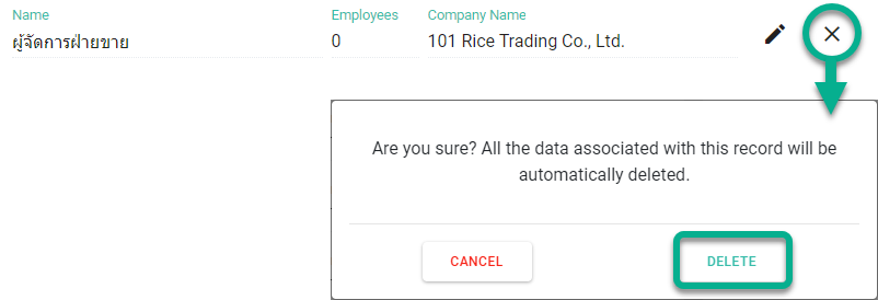 2. ระบบจะแจ้งเตือนว่า ข้อมูลที่เกี่ยวข้องกับตำแหน่งทั้งหมดจะถูกลบโดยอัตโนมัติ