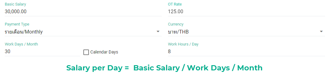 💬 Noteจำนวนวันทำงานต่อเดือน (Work Days / Month) ใน สัญญาจ้างของพนักงาน มีผลกับการคำนวณ