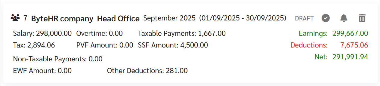 - โดย หากบล็อคเงินเดือนมีสถานะเป็น ฉบับร่าง (Draft) ระบบจะไม่อนุญาตให้สร้างไฟล์ธนาคาร หรือ แจ้งเตือนสลิปเงินเดือนของบล็อคเงินเดือนนั้น ๆ