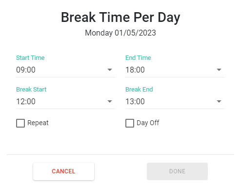 แอดมินสามารถตั้งค่าเวลาพักเบรคให้กับพนักงานสำหรับการทำงานในแต่ละวันได้ เพื่อให้สอดคล้องกับการทำงาน
