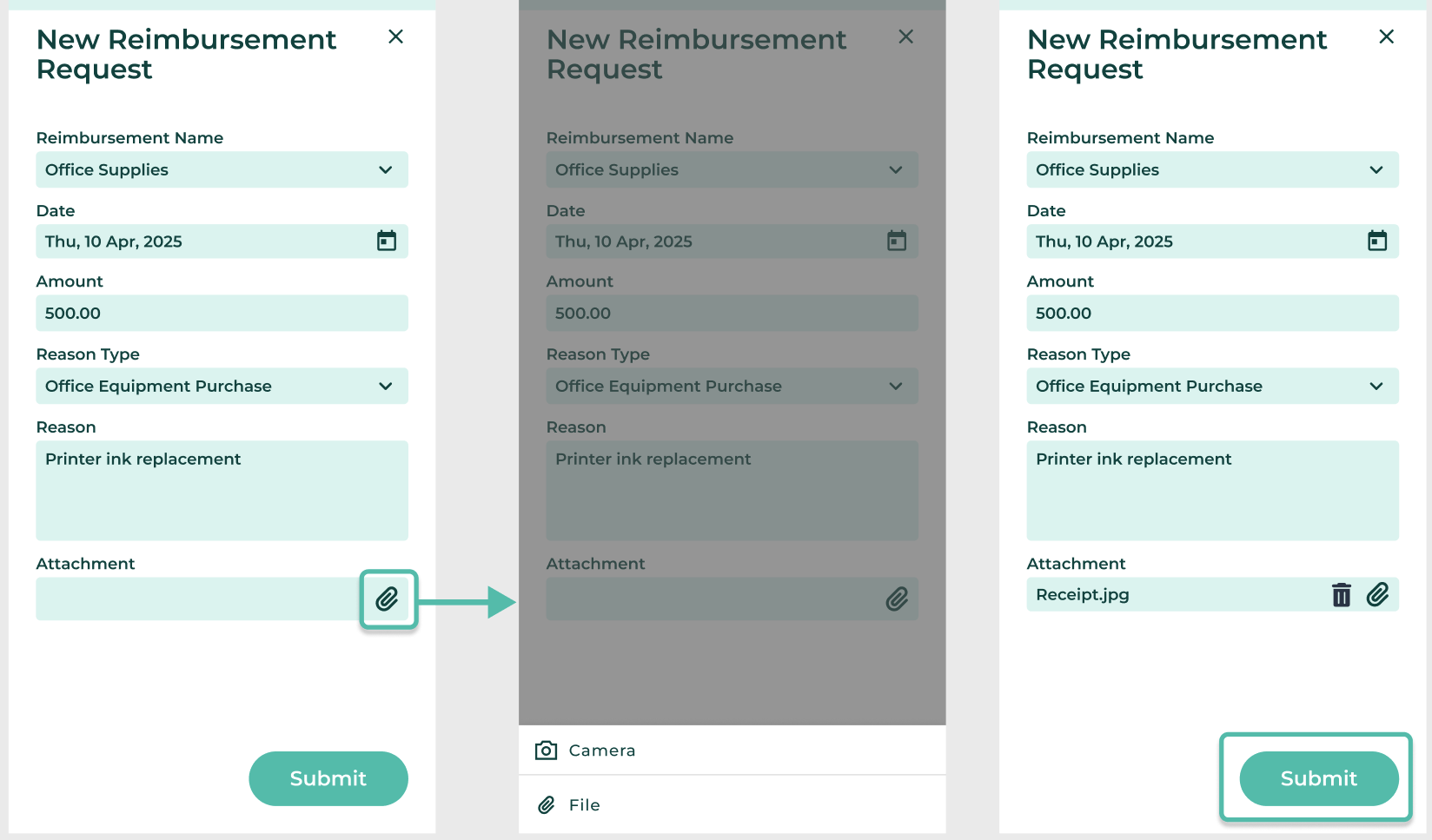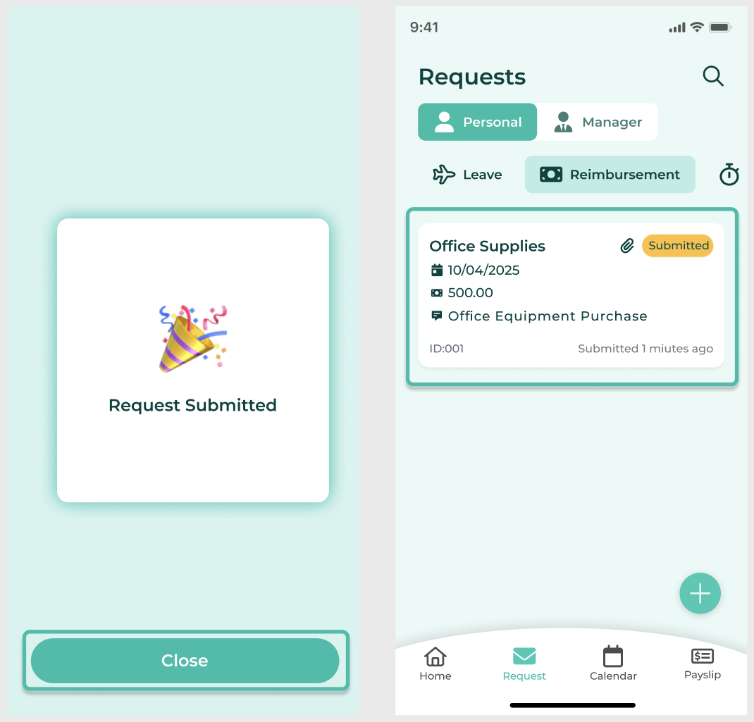 การสร้างคำร้องการขอเงินคืนในแอปมือถือสำหรับเงินได้รายการเดียว (Add New Reimbursement Requests in Mobile App for Single Payment)