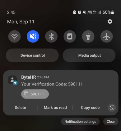 หากพนักงาน ลบและติดตั้งแอปใหม่ หรือไม่มีการเข้าสู่ระบบผ่านอุปกรณ์ที่เชื่อถือได้ (Trusted Devices) หลังจากผ่านไป 30 วัน ระบบจะให้พนักงานทำการยืนยันตนแบบสองขั้นตอนอีกครั้งในการเข้าสู่ระบบครั้งถัดไป