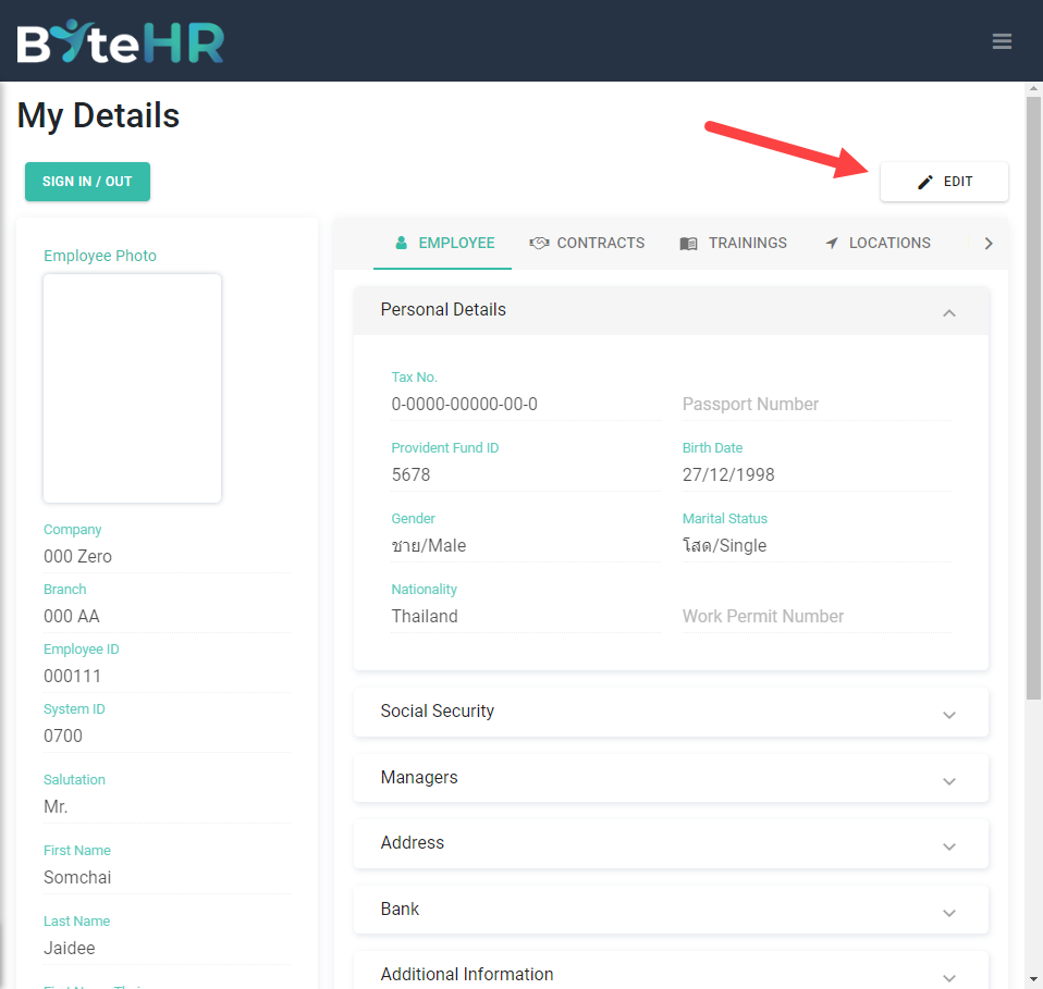 พนักงานแก้ไขข้อมูลส่วนตัวด้วยตนเอง(Employee Edit Personal Details)