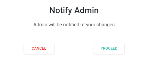 3. หลังจากกรอกข้อมูลสำเร็จแล้ว -> คลิกบันทึก(Save) -> ระบบจะแสดง pop-up เพื่อแจ้งข้อมูลที่ต้องการแก้ไขไปยังแอดมินเพื่อทำการอนุมัติ -> คลิก ดำเนินการ(Proceed)