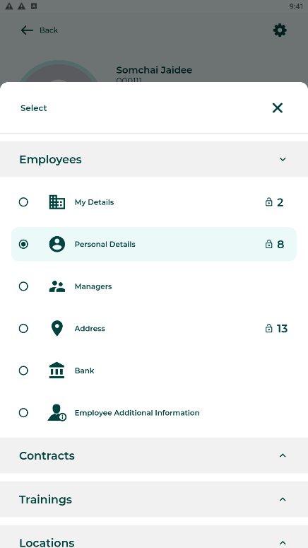 3. ระบบจะแสดงข้อมูลพนักงาน ในหัวข้อที่แอดมินได้ตั้งค่าอนุญาตให้พนักงานมองเห็น