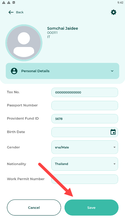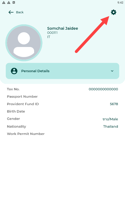4. หากพนักงานต้องการแก้ไขข้อมูลส่วนตัว ให้คลิกไอคอน ฟันเฟือง