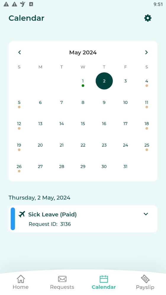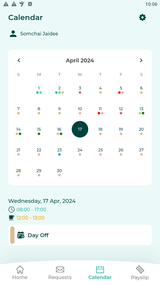 3. ระบบจะแสดงปฏิทินของพนักงานที่เลือก