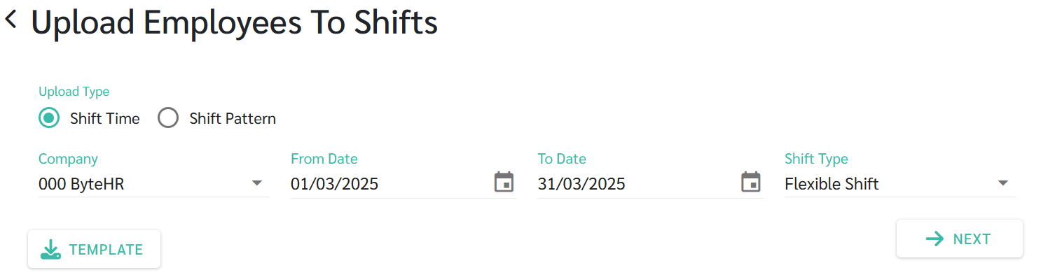 3. เลือกประเภทการอัปโหลด(Upload Type) เป็น อัปโหลดด้วยเวลากะ(Shift Time)