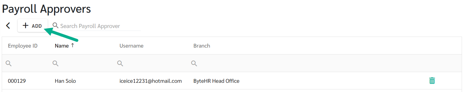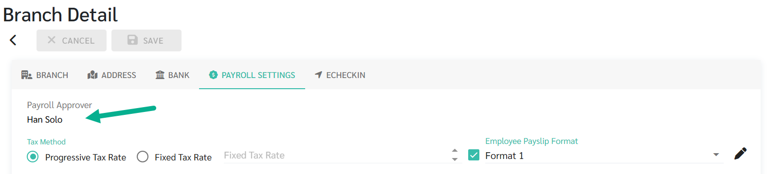 6. เมื่อมีการกำหนดผู้อนุมัติเงินเดือนให้กับสาขาใดแล้ว สาขานั้นจะมีเพียงผู้อนุมัติเงินเดือนเท่านั้นที่สามารถอนุมัติเงินเดือนได้ สามารถตรวจสอบรายชื่อผู้อนุมัติเงินเดือนได้ที่หน้า ผู้อนุมัติเงินเดือน (Payroll Approvers) หรือที่รายละเอียดสาขา - การตั้งค่าเงินเดือน (Branch Detail - Payroll Settings) โดยแต่ละสาขาสามารถกำหนดผู้อนุมัติเงินเดือนได้ 1 คนเท่านั้น