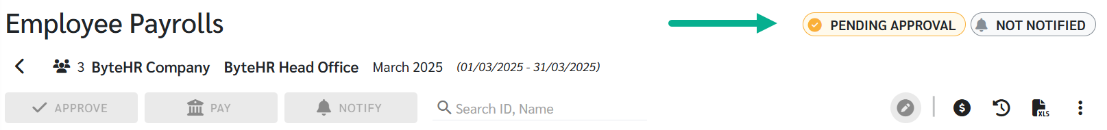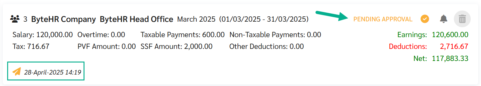 3. บล็อคเงินเดือนจะถูกอัปเดทเป็นสถานะ รอการอนุมัติ (Pending Approval) โดยแอดมินจะไม่สามารถดำเนินการอนุมัติ แก้ไข หรือ บันทึกเป็นฉบับร่างได้ จะต้องรอให้ผู้อนุมัติเงินเดือนเข้ามาดำเนินการขั้นตอนต่อไปเท่านั้น