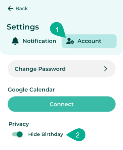 3. เลือกแถบ บัญชี (Account) ใต้หัวข้อ ความเป็นส่วนตัว (Privacy) สามารถเลือกเปิดใช้งาน ซ่อนวันเกิด (Hide Birthday) ได้
