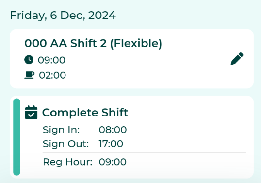 1. ทำงานครบชั่วโมง (Complete Shift) หมายถึง พนักงานทำงานครบชั่วโมงที่ Admin กำหนด โดยปฏิทินจะแสดงเป็นสีเขียว