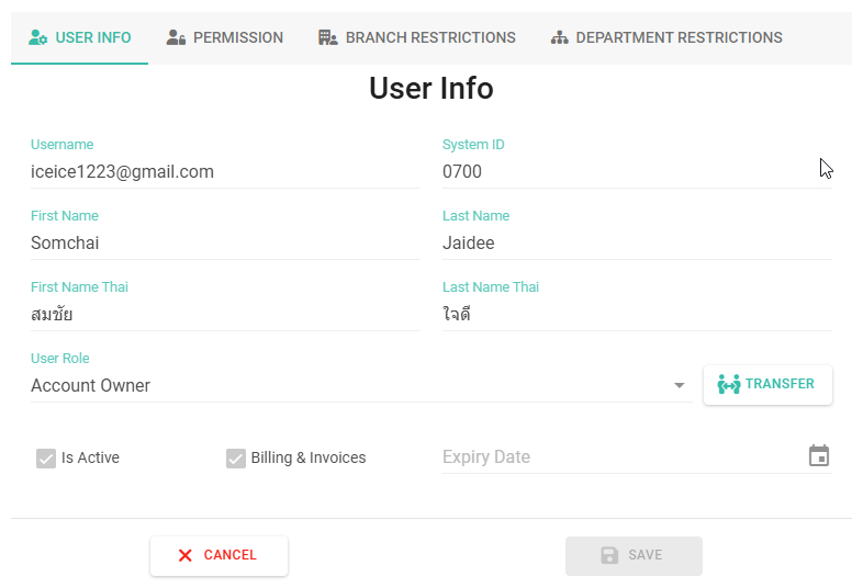 ปัจจุบันแอดมินสามารถกำหนด User ที่ต้องการให้เป็นผู้ดูแลการวางบิลได้ โดยระบบจะส่งอีเมลเกี่ยวกับการวางบิลให้กับ User ที่ถูกเลือกไว้เท่านั้น