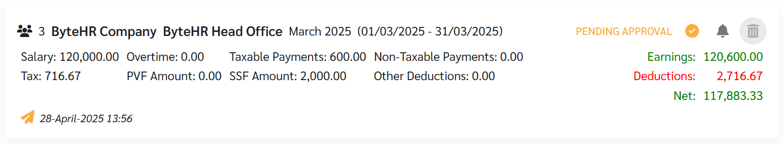 ปัจจุบันแอดมินสามารถระบุผู้อนุมัติเงินเดือนสำหรับแต่ละสาขาได้ โดยหากมีการระบุผู้อนุมัติเงินเดือนไว้ เมื่อแอดมินทำเงินเดือนสำเร็จแล้ว ระบบจะทำการแจ้งเตือนผู้อนุมัติเงินเดือนเพื่อดำเนินการตรวจสอบข้อมูลเงินเดือนและอนุมัติเงินเดือน