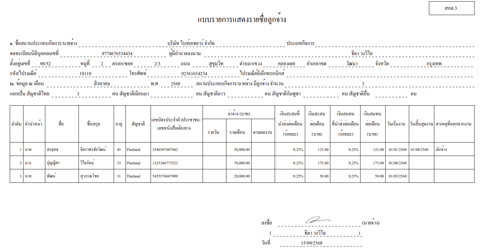 รายงานสกล.3 (EWF.3 Report) (กองทุนสงเคราะห์ลูกจ้าง /Employee Welfare Fund)
