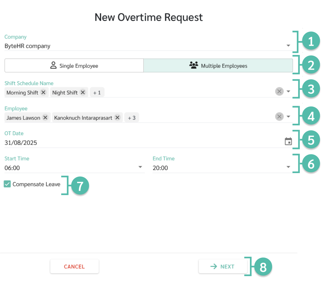 คำร้องขอทำโอทีหลายคำร้อง (Multiple Overtime Request)