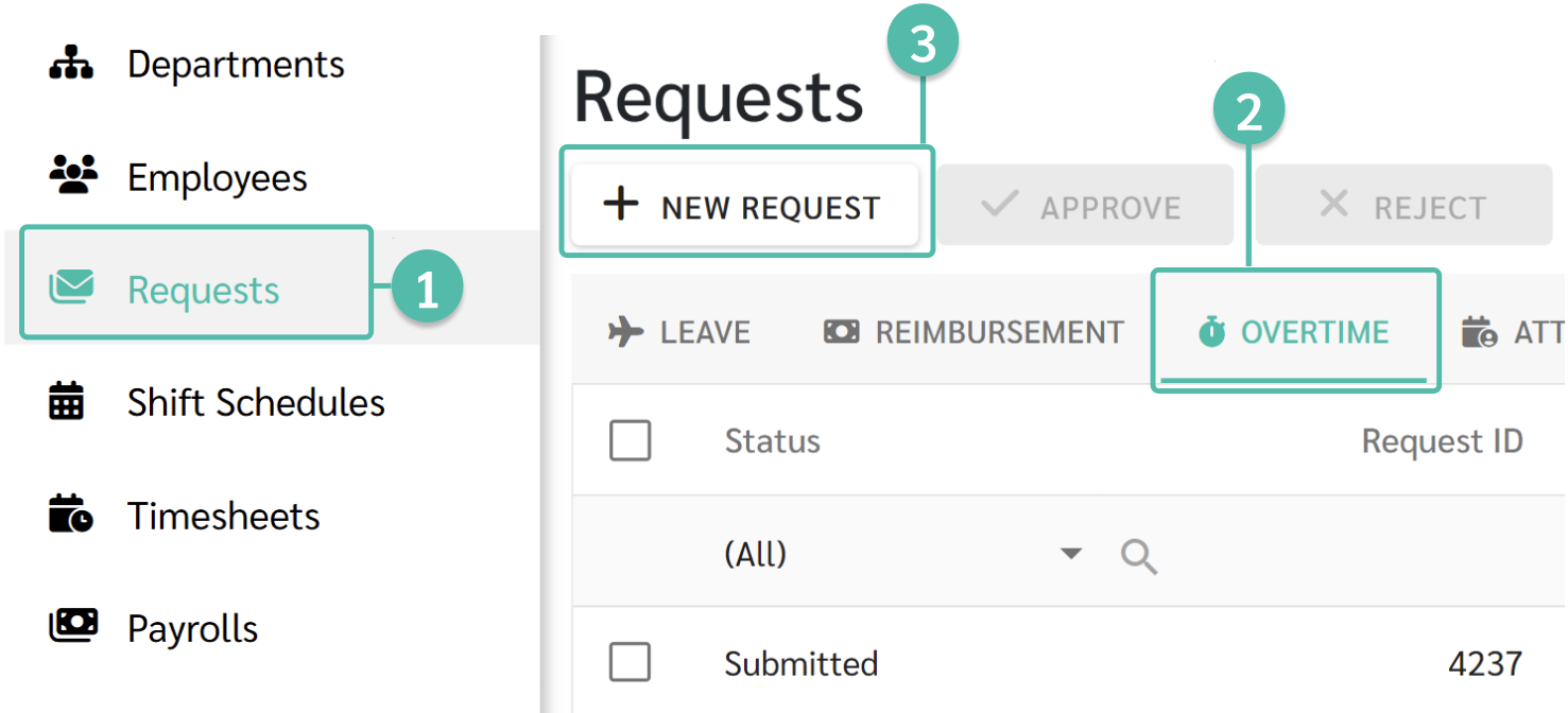 2. เลือกที่แท็บการร้องขอค่าล่วงเวลา (Overtime)