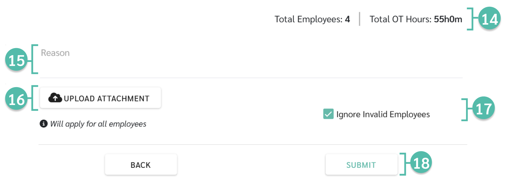 15. ระบุเหตุผล(Reason) ในการขอค่าล่วงเวลา