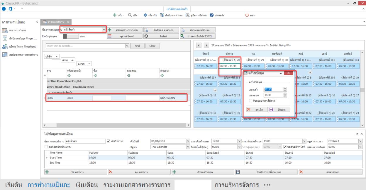 การแก้ไขเวลาในตารางกะเป็นรายบุคคล/Edit time in shift schedules individually